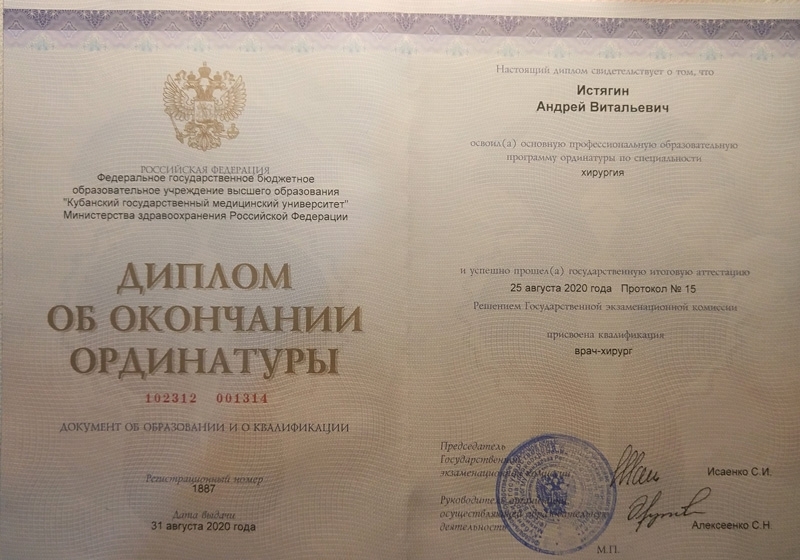 - 2018-2026 врач-хирург "Экстренного хирургического отделения №2" Краевой клинической больницы скорой медицинской помощи г. Краснодар