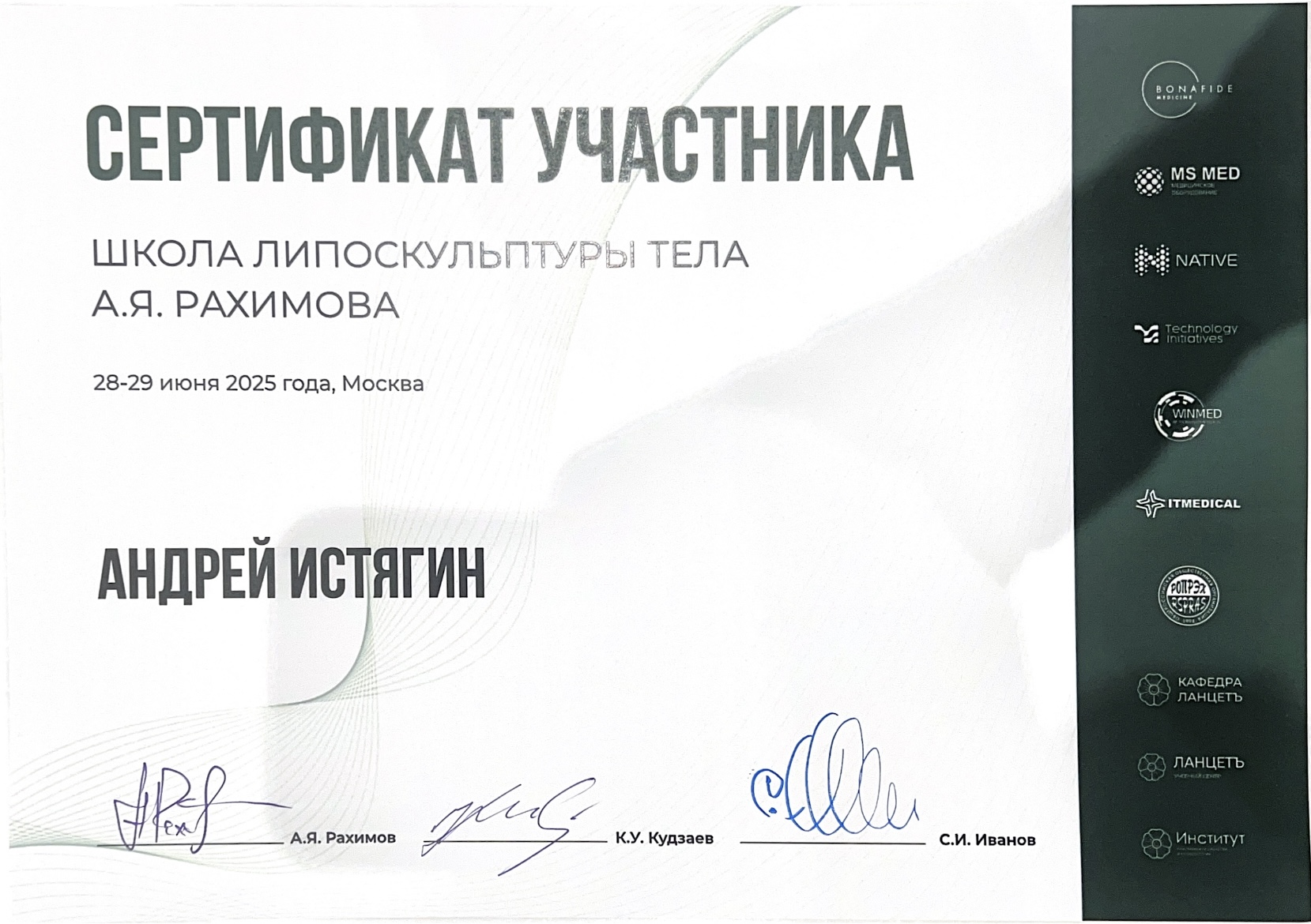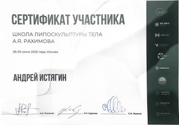 - 2025 - Участник "Школы липоскульптуры тела" А.Я. Рахимова - г. Москва