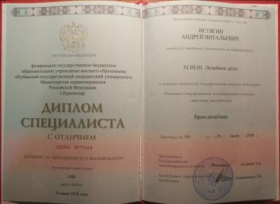 - 2019 - Диплом участника "II черноморского конгресса по пластической хирургии и косметологии" г. Геленджик